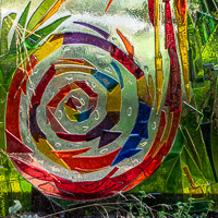 gefused glas in aluminium raam, 33 x 33cm. (HxB)